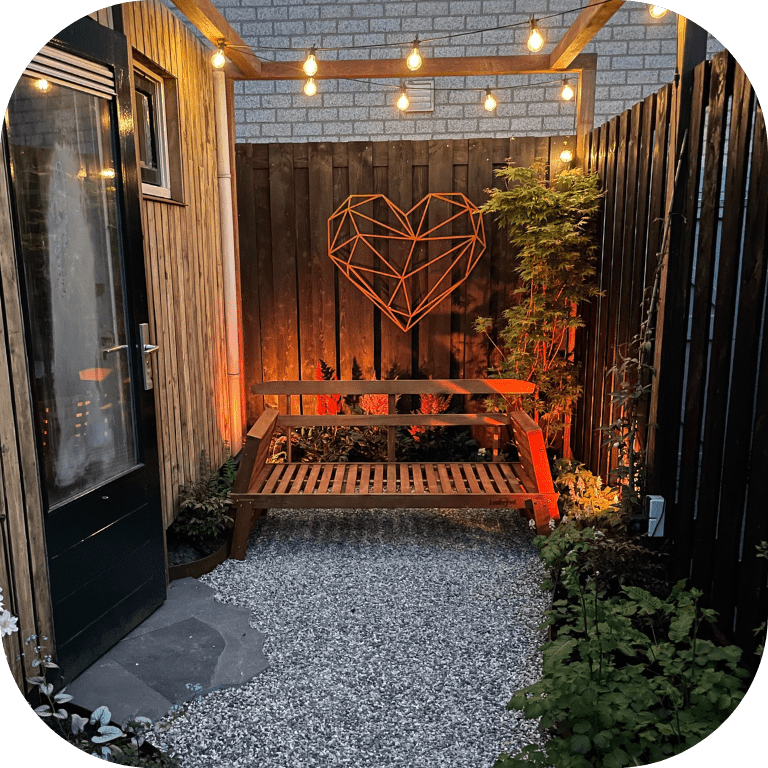 L'éclairage donne de l'ambiance à votre petit jardin, surtout la nuit. Grâce à un éclairage intelligent, vous pouvez agrandir votre jardin et mettre en valeur les plus belles plantes et décorations. Suspendez des lanternes, placez de petites lampes le long des allées ou utilisez des jardinières avec éclairage intégré.