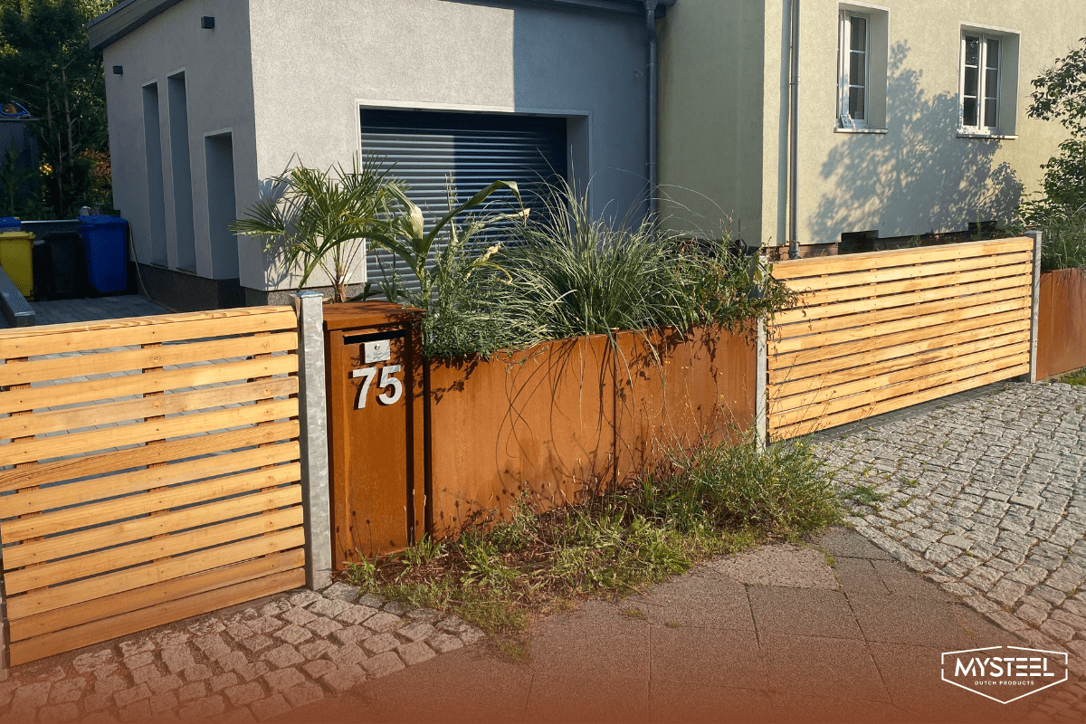 "L'acier Corten est polyvalent : vous pouvez utiliser des jardinières, des boîtes aux lettres, des numéros de maison, des murs de soutènement, des bordures et des pergolas dans votre jardin de devant."