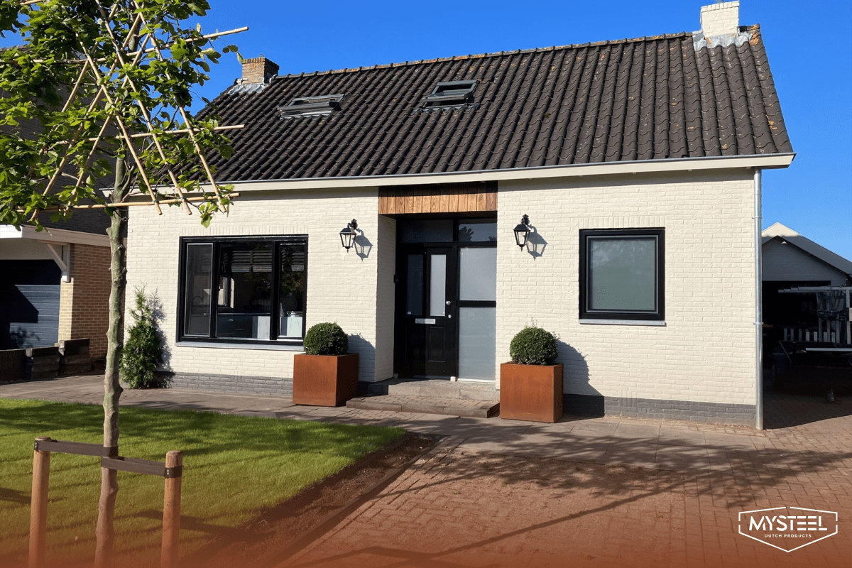 Pour un look cohérent, vous pouvez ajouter d'autres éléments en acier Corten dans votre jardin avant, comme un numéro de maison en acier Corten. Il s'agit d'un détail subtil, mais qui attire l'attention.