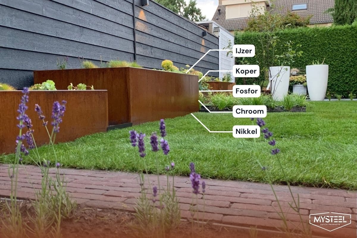 L'acier corten est un type d'acier que vous pouvez utiliser de différentes manières dans le jardin. La particularité de l'acier corten est qu'une couche de rouille naturelle se forme sur le matériau et le protège. Le matériau dure donc longtemps et vous n'avez pas besoin de faire grand-chose pour qu'il reste beau. Vous ne devez pas vous inquiéter des effets négatifs de l'acier corten, car le matériau ne dégage aucune substance nocive.