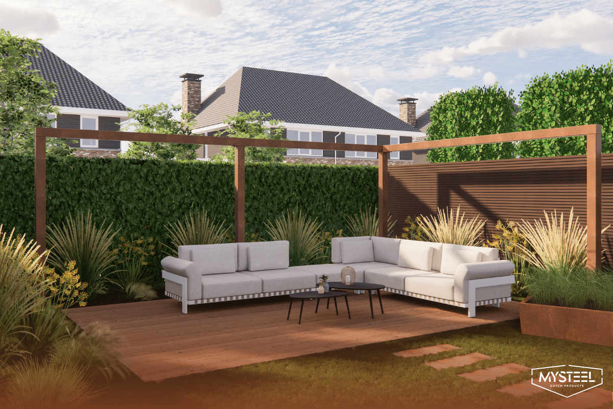 En outre, l'acier a un aspect moderne et est disponible en différentes couleurs. Chez MySteel, vous pouvez obtenir des pergolas en acier Corten et en 204 couleurs de peinture en poudre. Vous pouvez donc toujours choisir la couleur qui convient le mieux à votre jardin. Pour en savoir plus sur nos modèles, consultez le paragraphe Pergolas de MySteel en différentes couleurs.