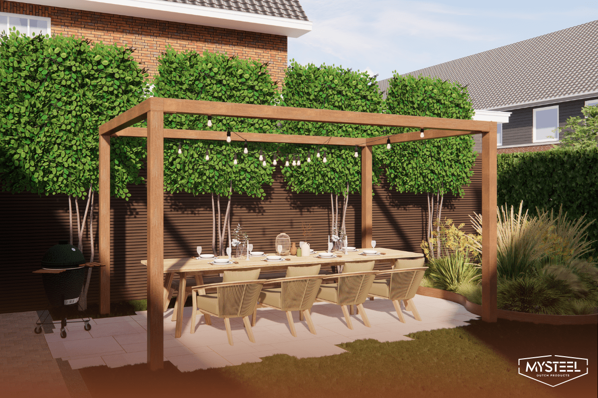 En résumé, une pergola en acier n'est pas seulement fonctionnelle, elle crée également une atmosphère agréable dans votre jardin. Que vous souhaitiez plus d'intimité, que vous ayez besoin d'une protection contre le soleil ou que vous cherchiez simplement un endroit pour vous détendre, la pergola en acier de MySteel offre la solution. Cette pergola est robuste, a un aspect moderne et s'intègre parfaitement dans n'importe quel jardin. De plus, vous pouvez facilement l'installer vous-même. Visitez dès à présent la boutique en ligne de MySteel pour découvrir la gamme de pergolas en acier et donner un nouveau look à votre jardin ou à votre terrasse.