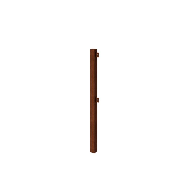Ce poteau d'extrémité est conçu en acier Corten de haute qualité, également appelé acier résistant aux intempéries. Ce matériau développe une couche naturelle de rouille qui protège l'acier contre les influences climatiques, contribuant ainsi à une longue durée de vie. Le processus de rouille commence en quelques semaines à quelques mois, avec l'apparition d'une couleur chaude orange-brun visible. Ce processus peut durer entre 1 et 2 ans pour être complètement achevé. Il est possible d'accélérer le processus avec l'accélérateur de rouille MySteel.