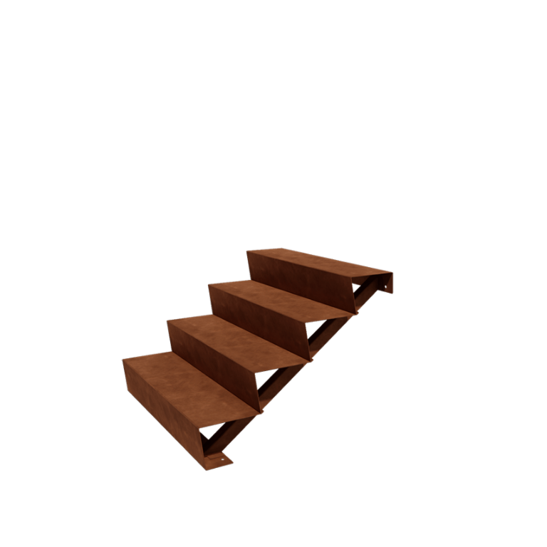 Matériau Ces escaliers sont fabriqués en acier Corten de classe A de qualité supérieure. Cet acier a pour particularité de se couvrir naturellement d’une couche protectrice d’oxydes (rouille). Cette couche d’oxydes agit comme un bouclier qui protège le cœur du matériau contre l’oxygène. L’oxydation est ainsi ralentie, mais la corrosion se poursuit, À la livraison, nos boîtes aux lettres en acier Corten arborent une couleur gris métallique qui passe au brun orangé en quelques semaines/mois, sans aucune intervention de votre part. Il se peut que votre escalier déteigne pendant la formation de la couche de rouille. L’acier Corten est un alliage de fer, de cuivre, de phosphore, de silicium, de nickel et de chrome.