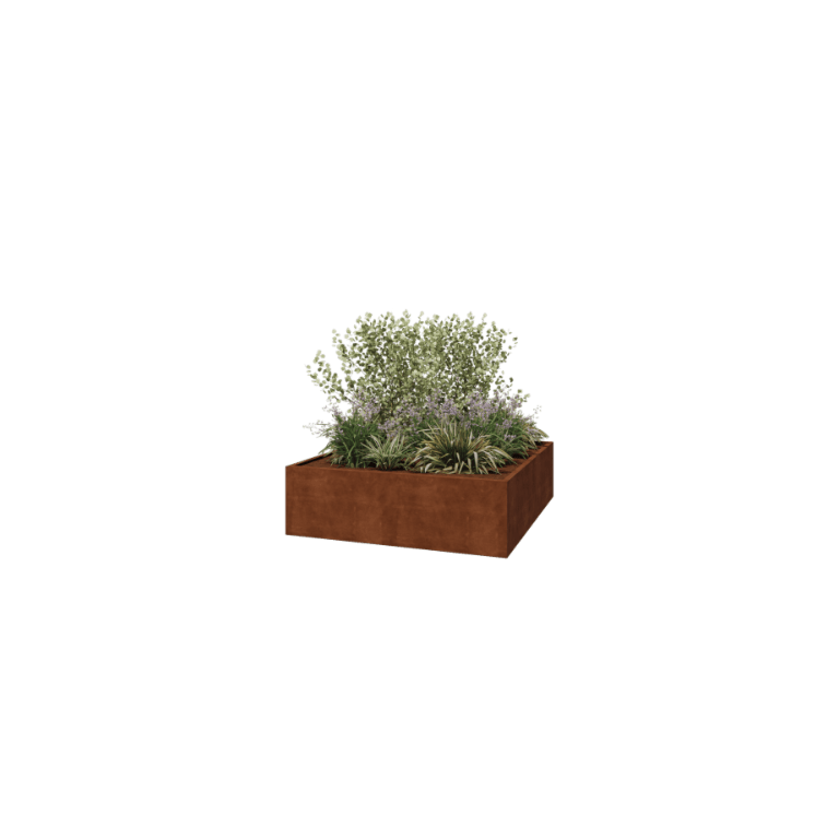 Le bac à plantes soudé en acier Corten est une jardinière carrée entièrement soudée, constituée d'une seule pièce. Il diffère ainsi de nos autres bacs à plantes, qui sont démontables. Le bac à plantes est uniquement disponible sans plaque de base en standard. Ce bac à plantes est d'une grande qualité esthétique et est fabriqué en interne, par nos propres artisans.