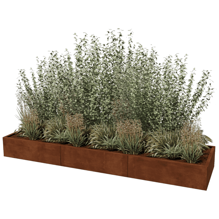 Cette jardinière est une jardinière modulaire en acier livrée en kit. La jardinière est construite à partir de panneaux séparés et de pièces d'angle. Les jardinières peuvent être assemblées de manière totalement aveugle. Aucune fixation n'est visible. Grâce à notre système modulaire, de très grandes dimensions sont également possibles. L'utilisation de pièces d'angle permet d'obtenir des formes uniques qui ne sont disponibles nulle part ailleurs en standard. Voir le manuel pour plus d'informations.