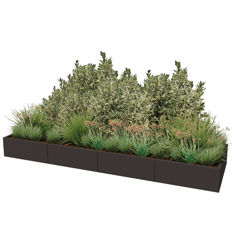 Cette jardinière est une jardinière modulaire en acier livrée en kit. La jardinière est construite à partir de panneaux séparés et de pièces d'angle. Les jardinières peuvent être assemblées de manière totalement aveugle. Aucune fixation n'est visible. Grâce à notre système modulaire, de très grandes dimensions sont également possibles. L'utilisation de pièces d'angle permet d'obtenir des formes uniques qui ne sont disponibles nulle part ailleurs en standard. Voir le manuel pour plus d'informations.