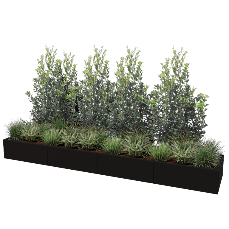 Cette jardinière est une jardinière modulaire en acier livrée en kit. La jardinière est construite à partir de panneaux séparés et de pièces d'angle. Les jardinières peuvent être assemblées de manière totalement aveugle. Aucune fixation n'est visible. Grâce à notre système modulaire, de très grandes dimensions sont également possibles. L'utilisation de pièces d'angle permet d'obtenir des formes uniques qui ne sont disponibles nulle part ailleurs en standard. Voir le manuel pour plus d'informations.